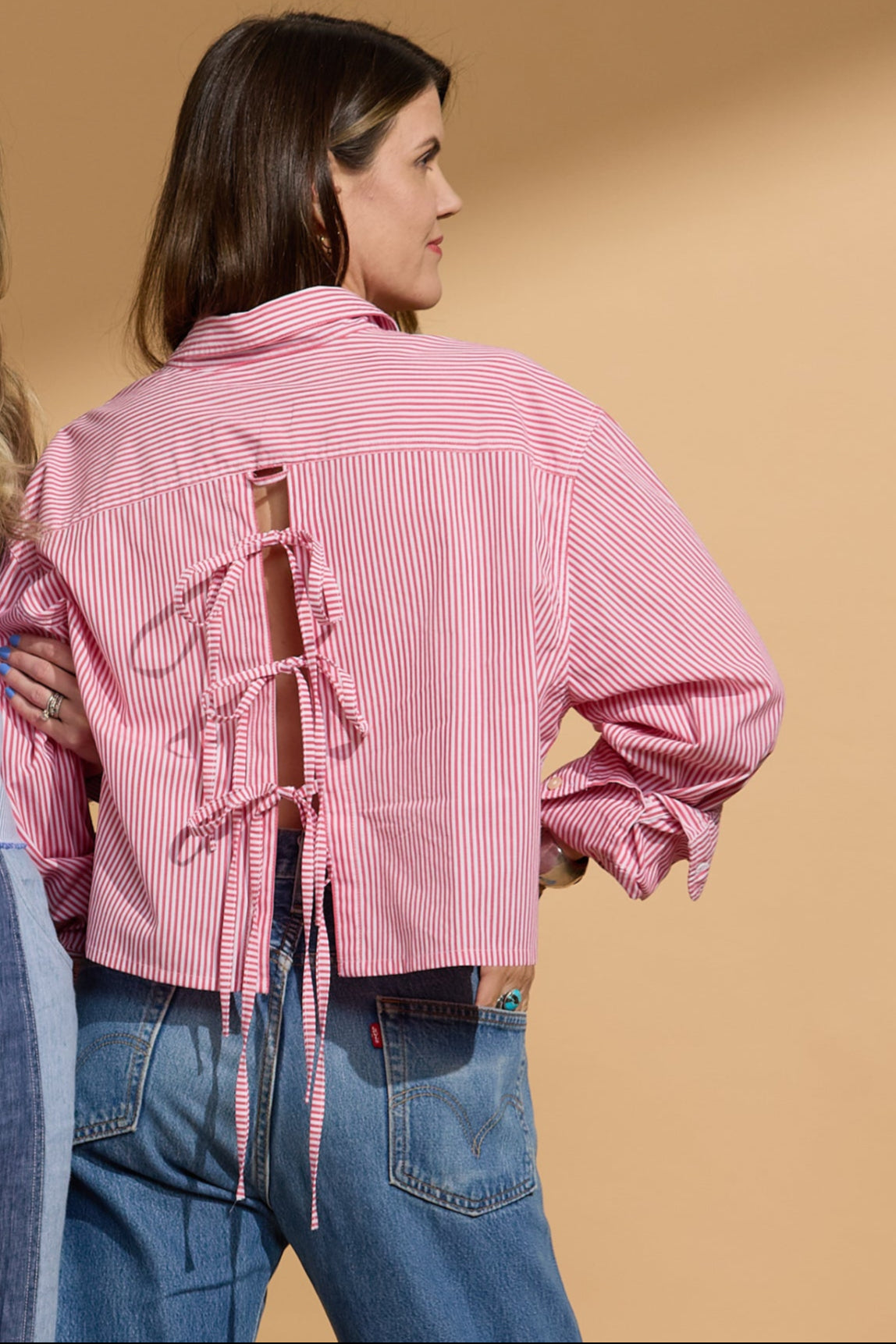 Shop HarlowThe feminine counterpart to the Stella. The Harlow features a clean, cropped hem and delicate multi-tie detailing at the back-bringing a feminine twist to our signature flex-fit shirting. Some Harlow's feature coordinating ties and some boast our signature grosgrain ribbon.