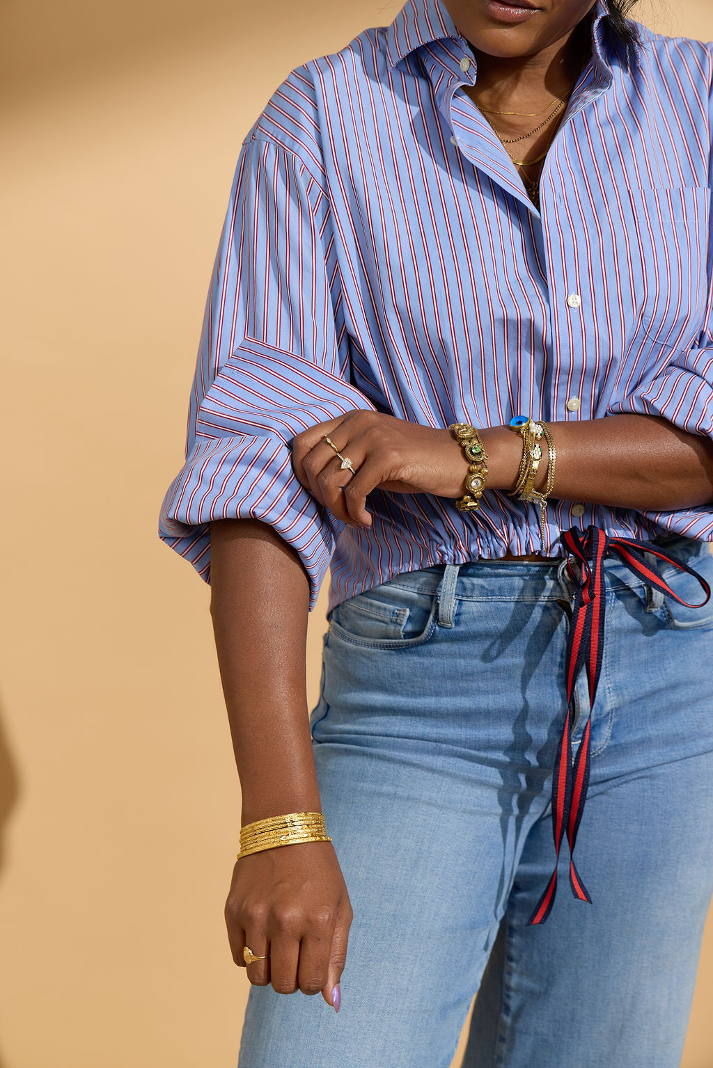 Shop SailorInspired by our love of versatile shirting. The Sailor features an extended hemline and a front cinch-tie detail using our signature grosgrain ribbon- cinch the ties to create a cropped look or wear it loose for an elongated silhouette.