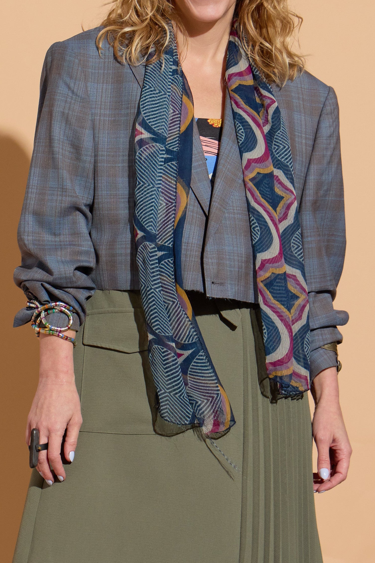 Our blazers are slightly oversized and made for a flex fit ranging from a size XS-XL. Each piece is hand stitched from thrifted fabrics and no two pieces are alike. See measurements and sizing provided for fit details.