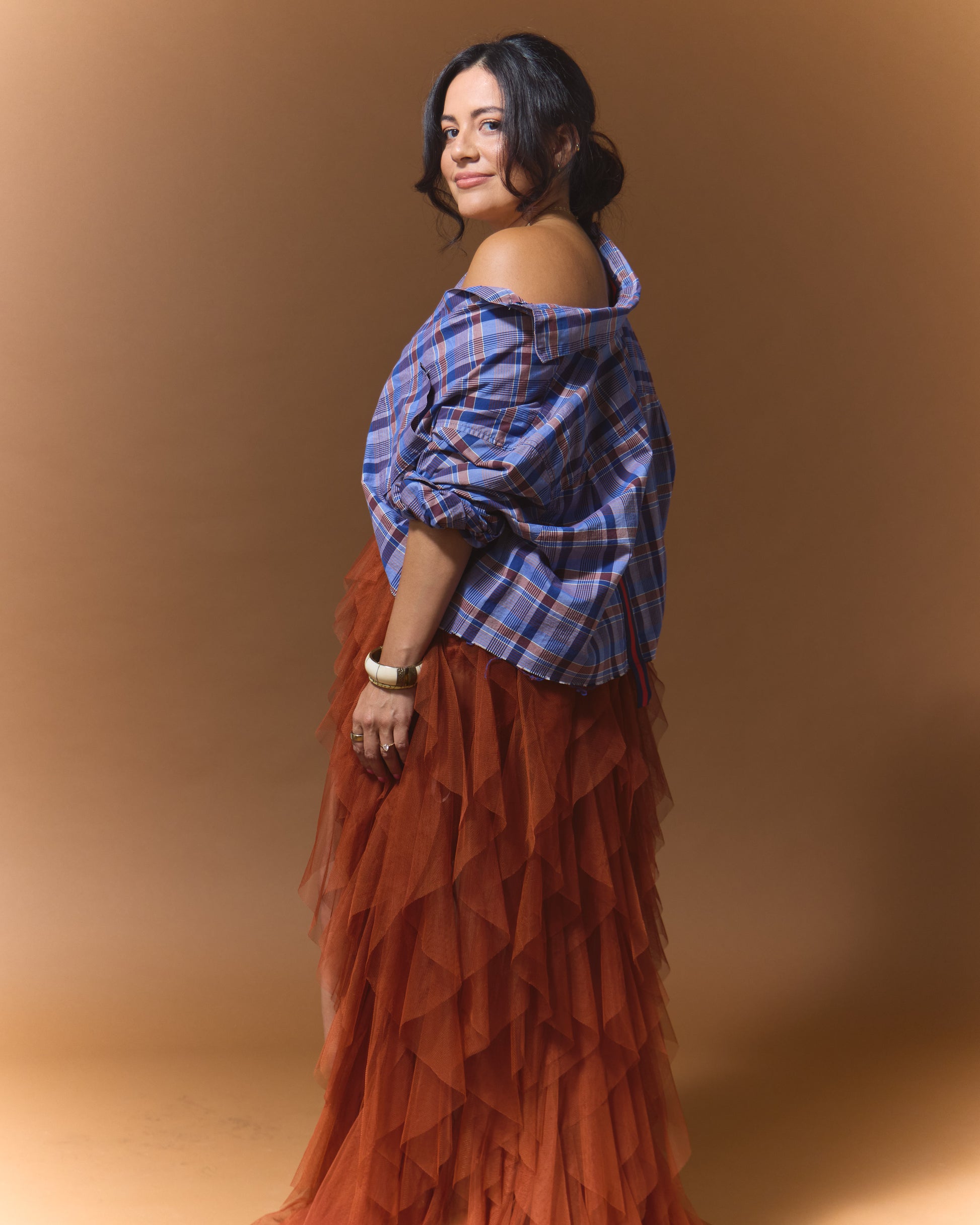 The original that started it all. The Stella features a cropped raw hem with a subtle dip at the back-adding shape, movement, and a touch of edge. Finished with our signature striped grosgrain ribbon down the back, it's an effortless standout.