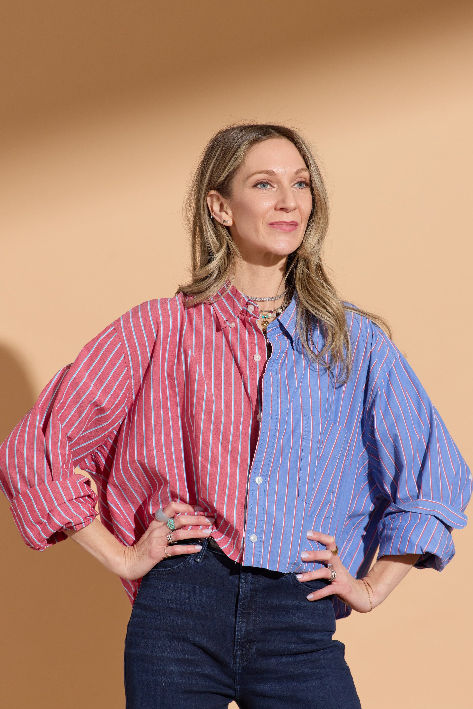 Our Pisces shirt is created by merging two vintage shirts into one, split clean down the middle. Different stripes. Different patterns. Different histories. Brought together in perfect balance.